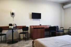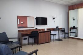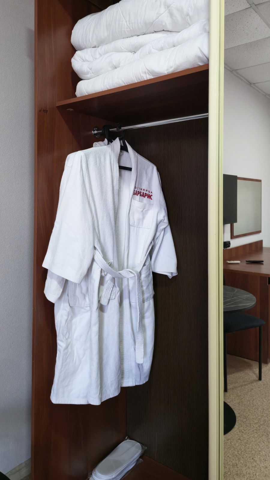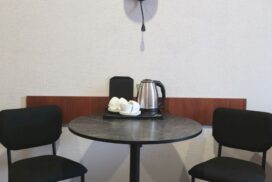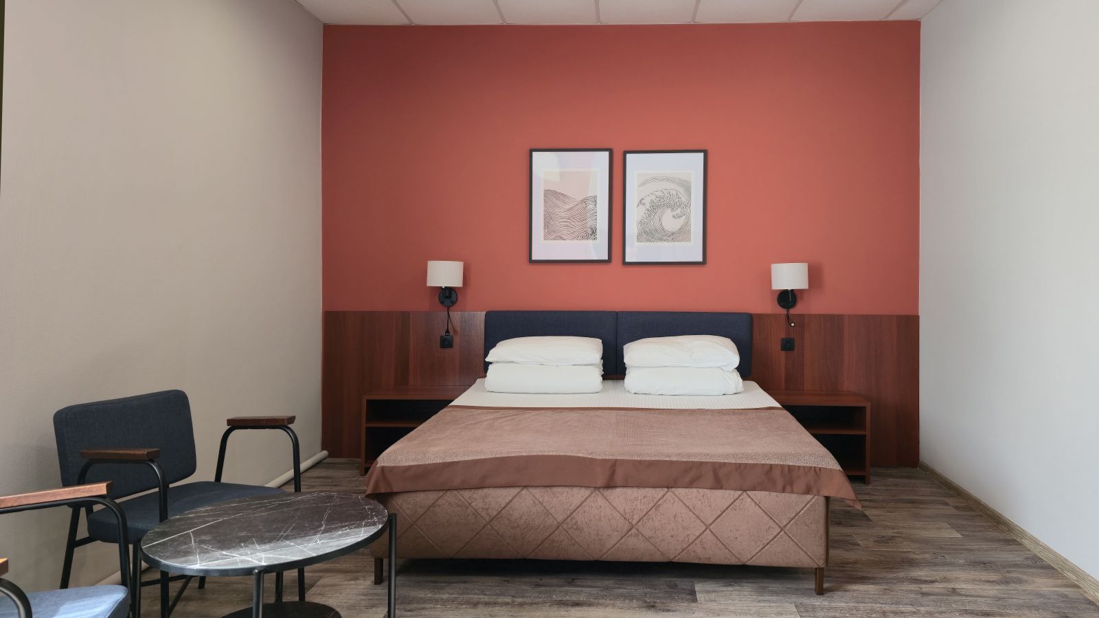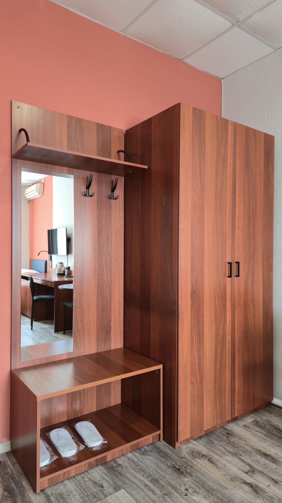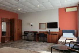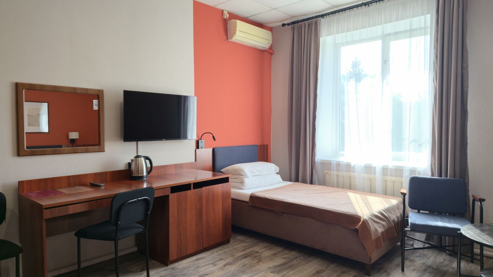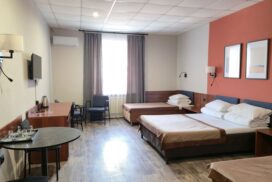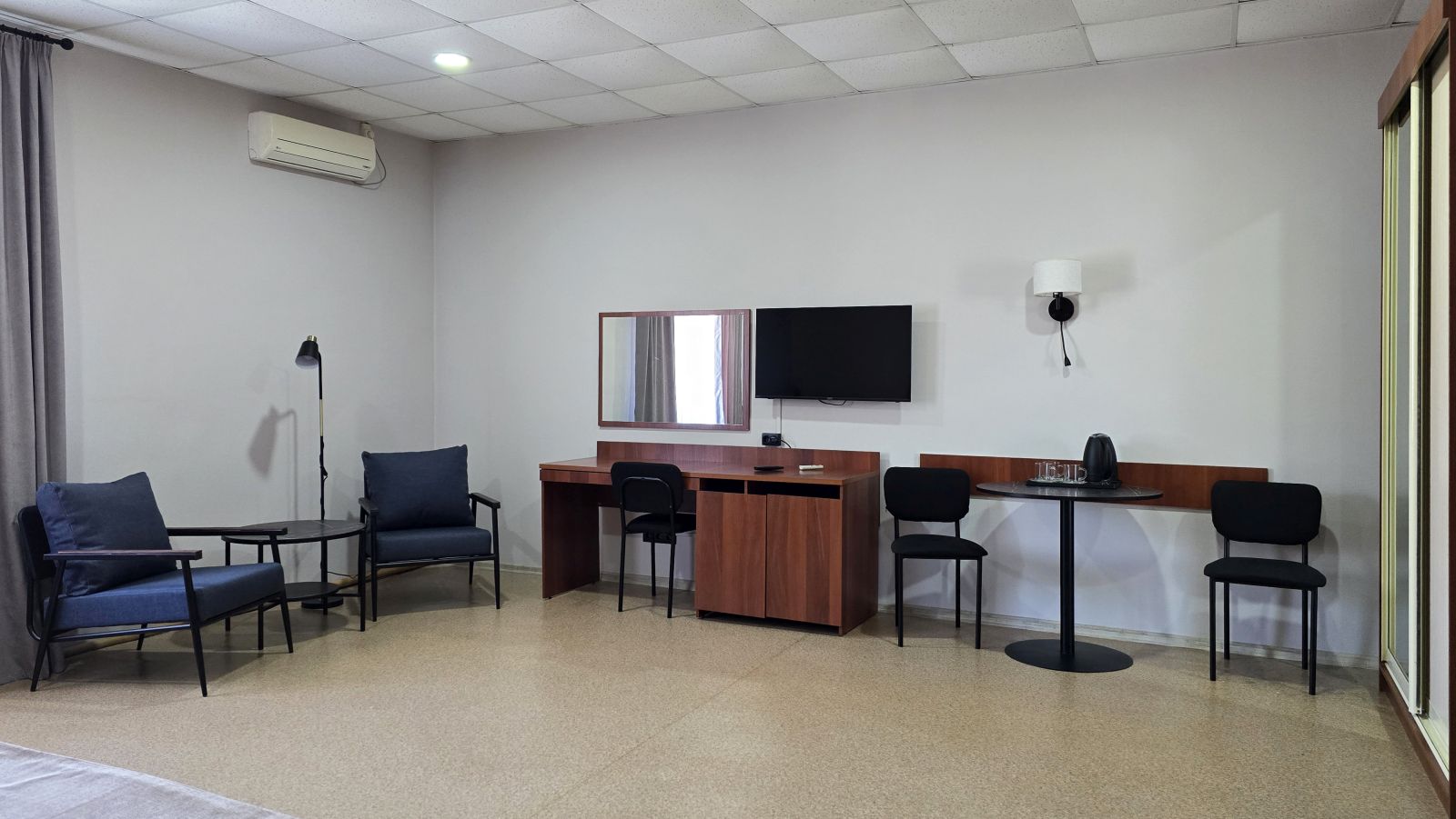 Просторный уютный семейный улучшенный номер (36 кв. м.) для пар с детьми; отдельная ванная комната, телевизор, обеденный стол, холодильник, чайник, кондиционер. Проведено кабельное телевидение, установлено оборудование беспроводного доступа в интернет.